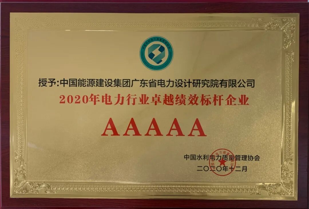 2020年,获评电力行业不凡绩效评价标杆5A企业