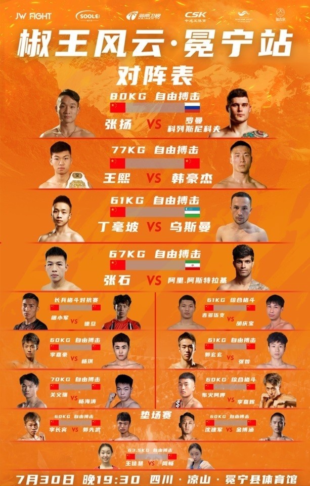 7月30日19:30,《椒王风浪格斗冠军赛-冕宁站》颤动来袭,中外拳王王人聚冕宁,让咱们一齐共同期待。