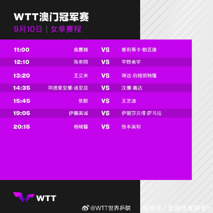 这个比赛日,日本队共有5名选手出战。刚刚截止的WTT老例挑战赛阿拉木图站,张本好意思和在女单1/8决赛以2-3被淘汰。来到澳门冠军赛,声威欠安的张本好意思和再次早早出局不是莫得可能。他们的具体对阵为:张本智和VS松岛辉空、伊藤好意思诚VS萨马拉、张本好意思和VS杨晓欣、木原好意思悠VS巴特拉。